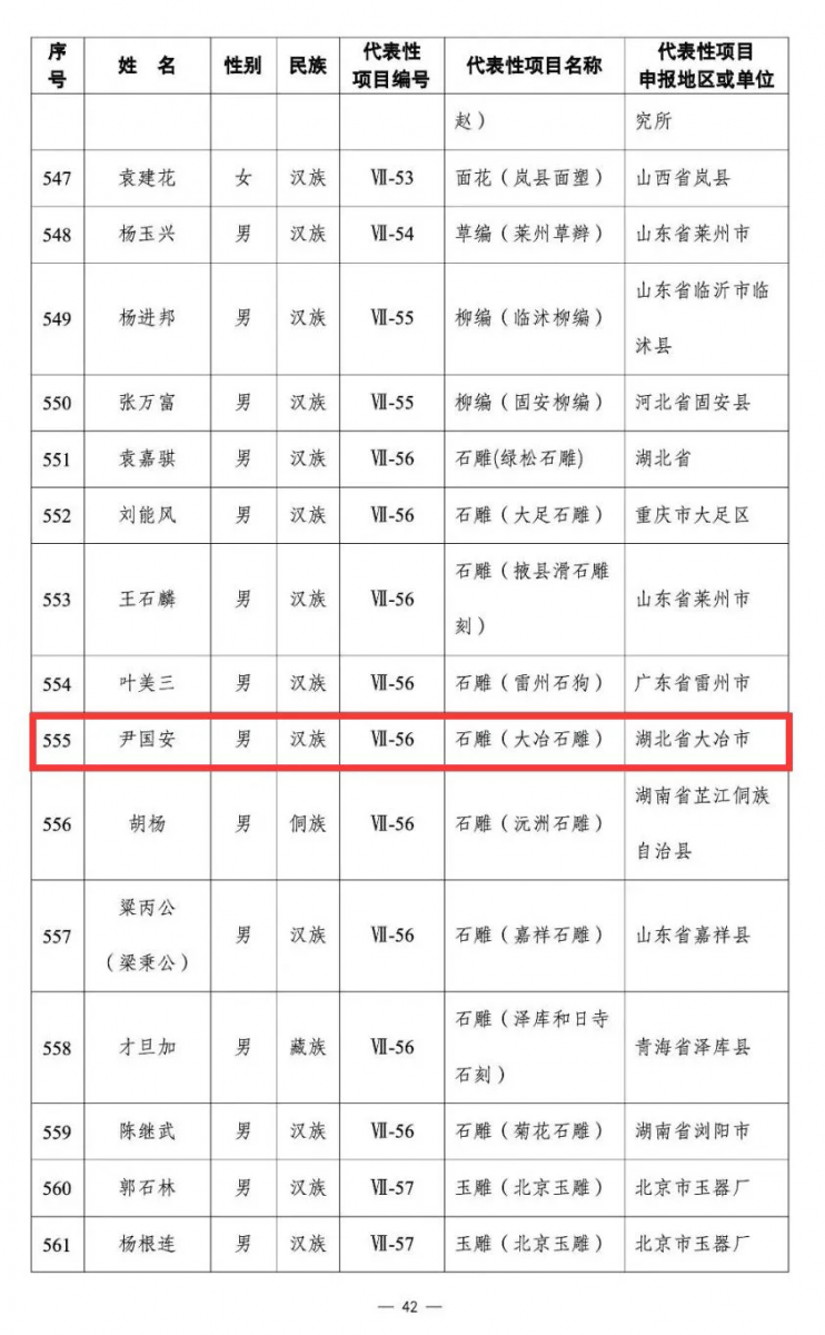 石雕是大冶民間藝術(shù)瑰寶,尤以保安鎮(zhèn)尹解元石雕為代表,自唐朝起世代相傳,迄今已逾千年,到2008年成功申報國家級非遺項目時,已先后誕生十代傳承人。其中尹國安是第八代傳承人,他的作品先后獲得多項大獎,多次受邀參與省級、國家級重點項目工程,2016年他設(shè)計施工了舉世矚目的G20杭州峰會主會場周邊的所有石雕及石欄桿裝飾工程;2017年4月,G20峰會石欄桿在第七屆中國(浙江)工藝美術(shù)精品博覽會獲得金獎。